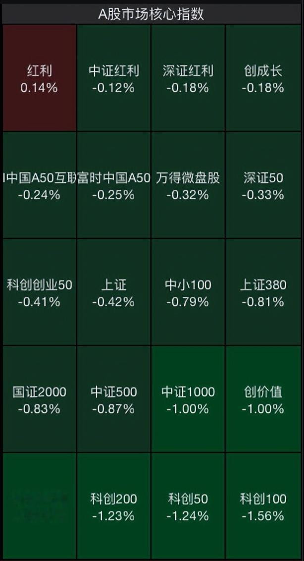 截止收盘,沪指-0.42%、深指-0.68%、创指-0.69%、科创50 -1.24%。